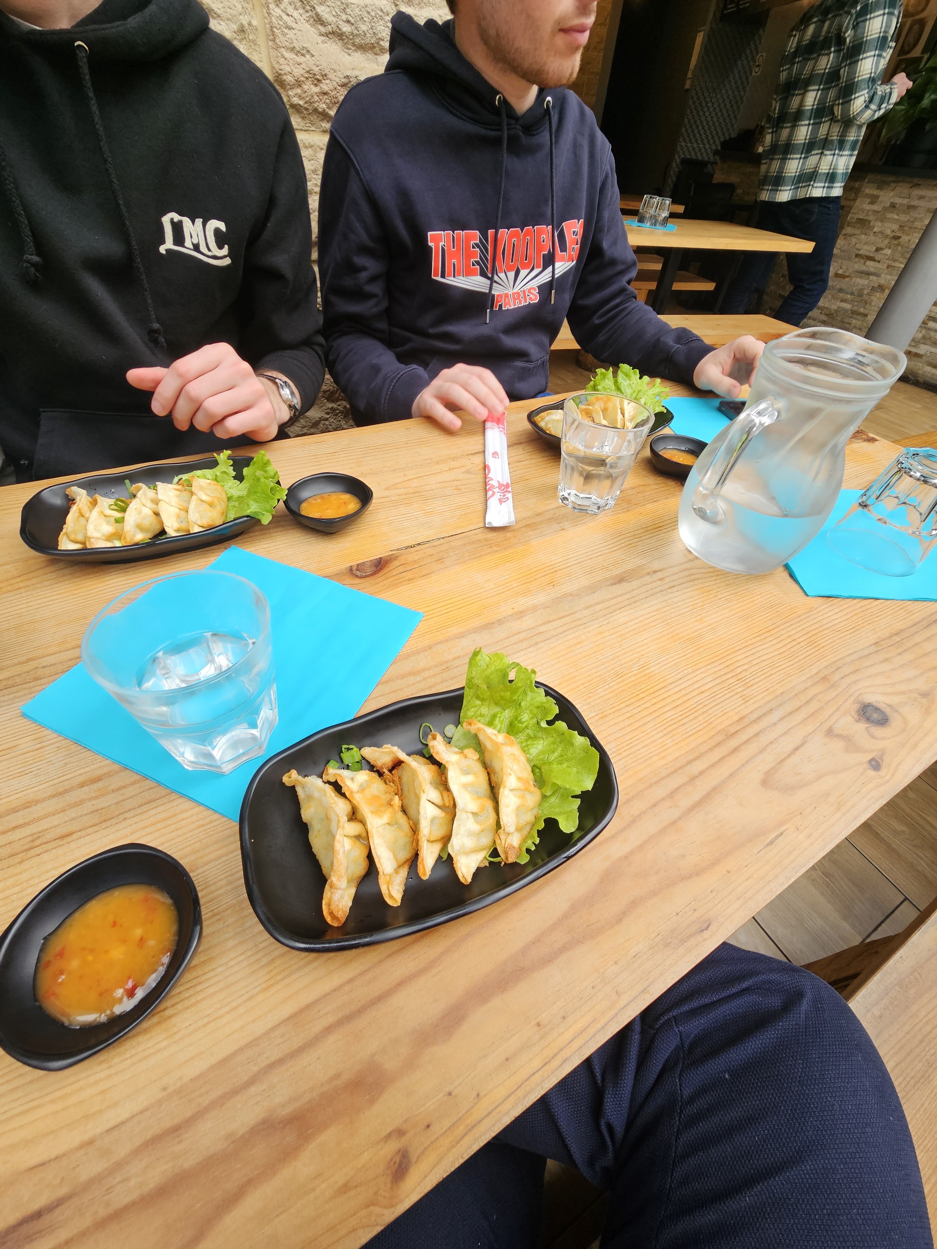 Gyoza croustillantes et pleines de goût, sauté crevettes incroyable ! Endroit très propre moderne et agréable