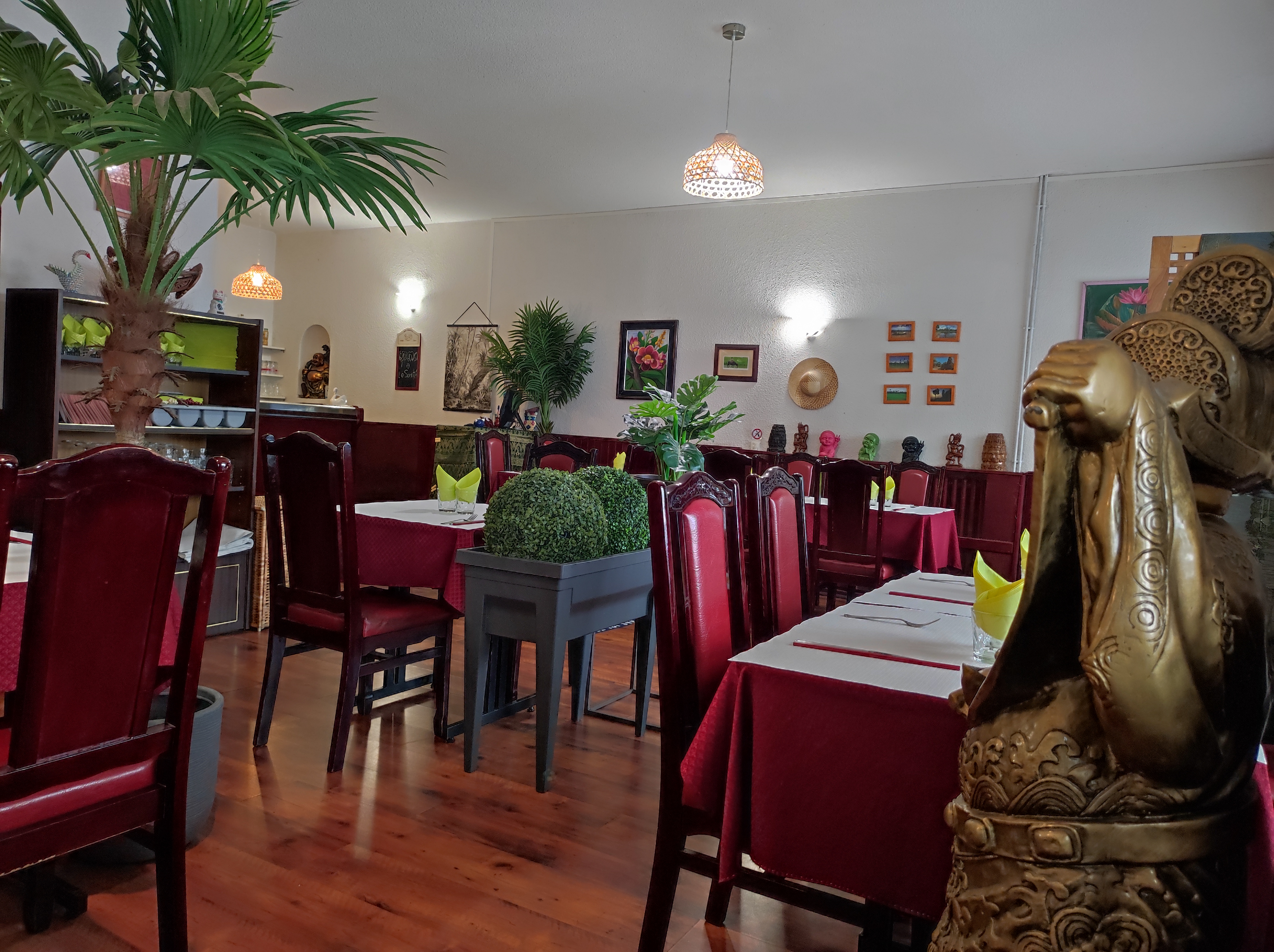Petit repas du samedi midi, restaurant vide mais accueil d'autant plus chaleureux. Le cadre est atypique, on a comme une impression de voyage, la carte est simple et pourtant assez complète pour plaire à tous : poisson, bœuf, crevettes, porc, à toutes les sauces et avec accompagnement. On regrette juste qu'il n'y ai pas de boisson traditionnelle ou de cocktails à thème. Le repas était très bon, les assiettes bien remplies ! Le riz se présente dans un petit panier, le plat lui est dans un petit bol bien décoré, ce qui permet de faire et refaire son assiette au fur et à mesure. Bref, un délicieux repas, je recommande pour le dépaysement et pour les saveurs asiatiques qui subliment l'ambiance.