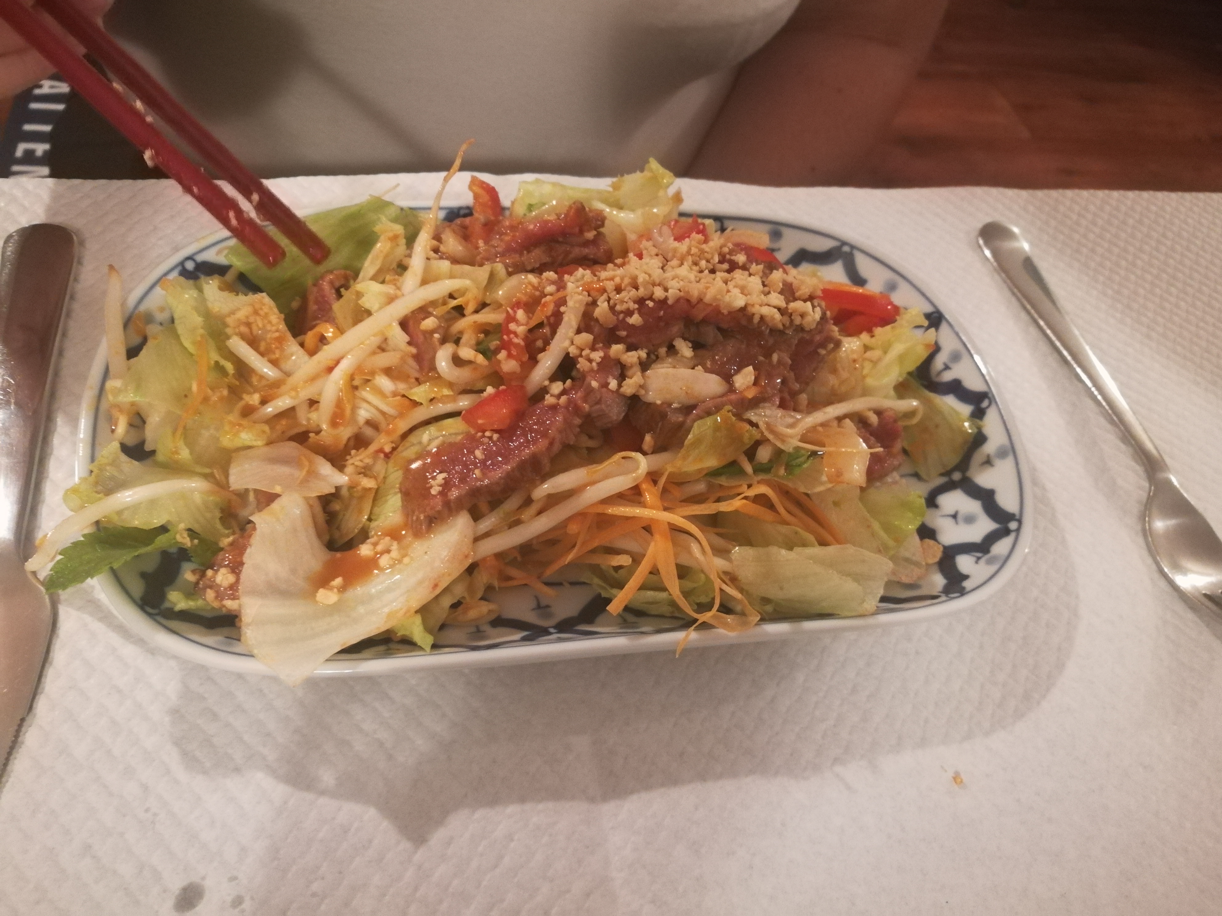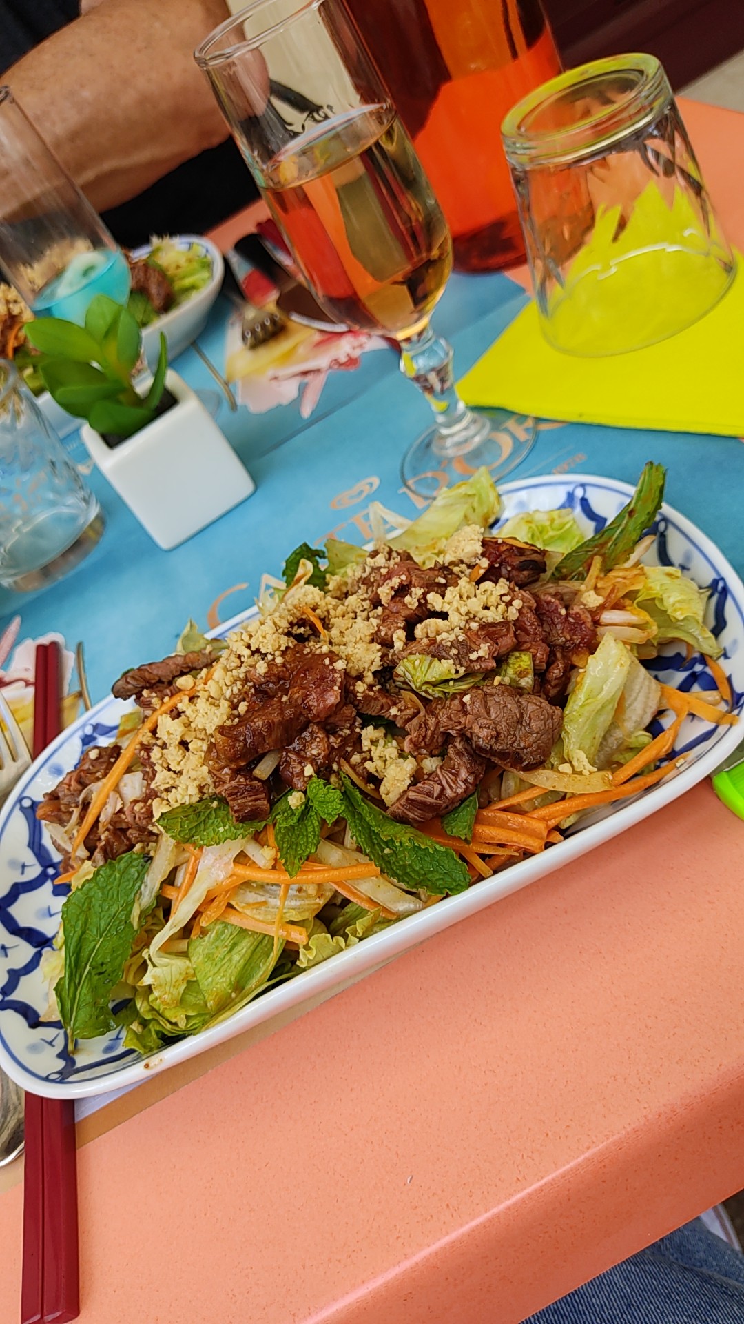 Salade bœuf hyper bonne. Prix un peu élevés, mais les saveurs sont là Carte ticket restau OK.