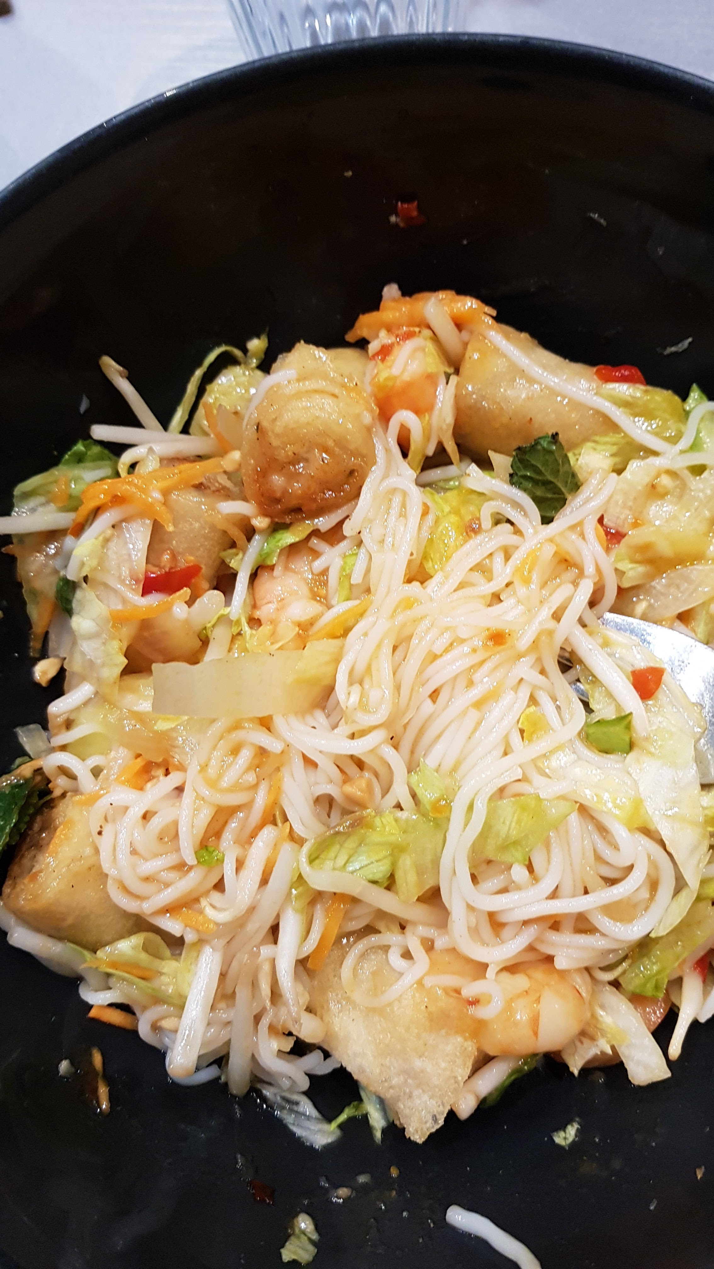 Très très bien rien à dire repas très frais, et bien servi, j'ai pris un Bô Bun poulet gingembre, et toujours aussi bon voir mieux qu'avant parce que le gingembre n'est pas succinct. Je recommande vivement, d'essayer..