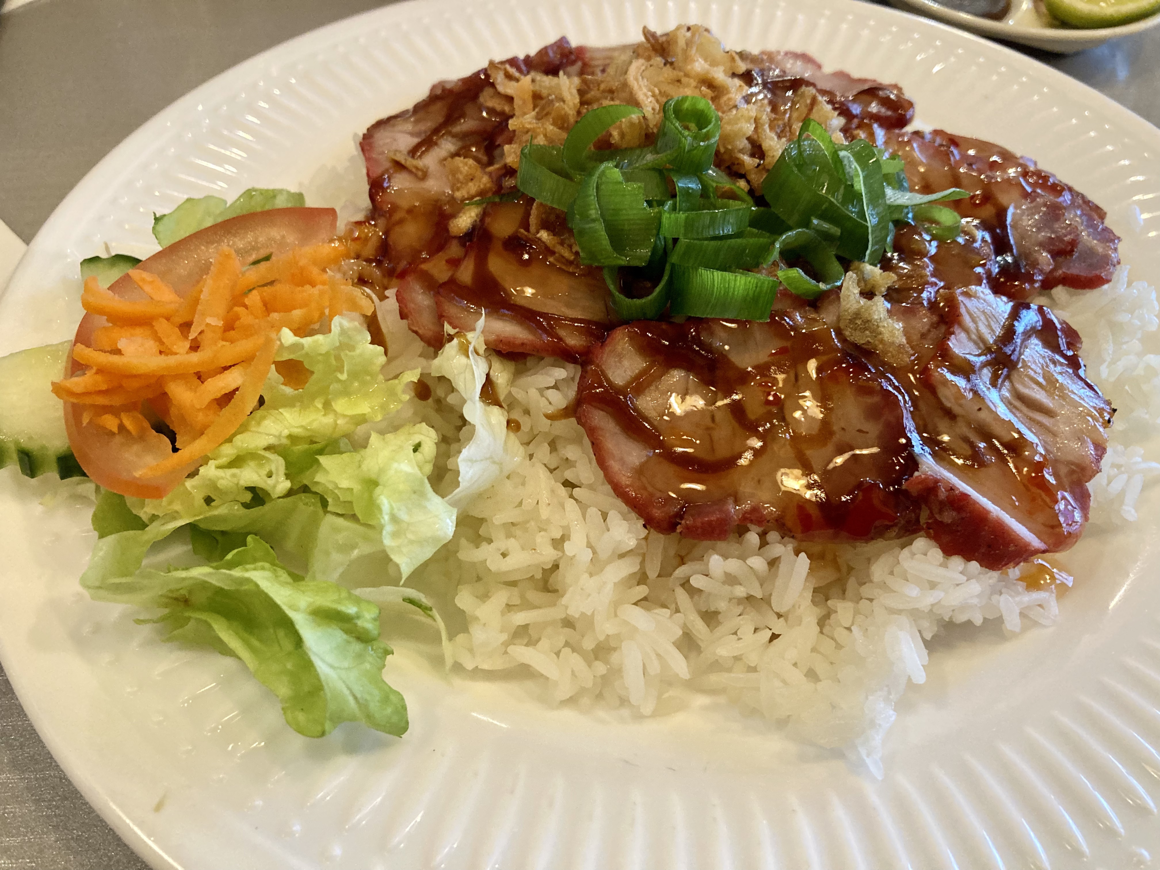Bonjour, les travers de porc grillès façon khmer avec riz blanc sont à tomber par terre. Essayez si possible!
