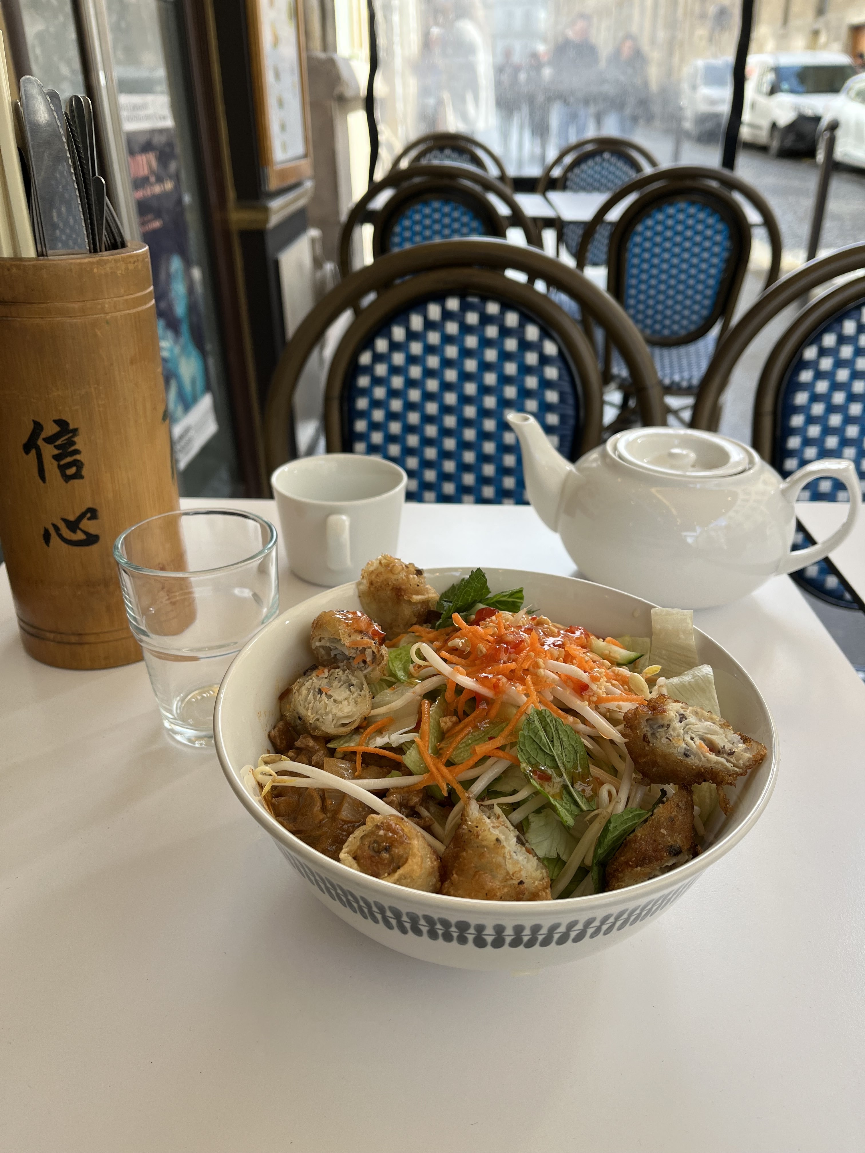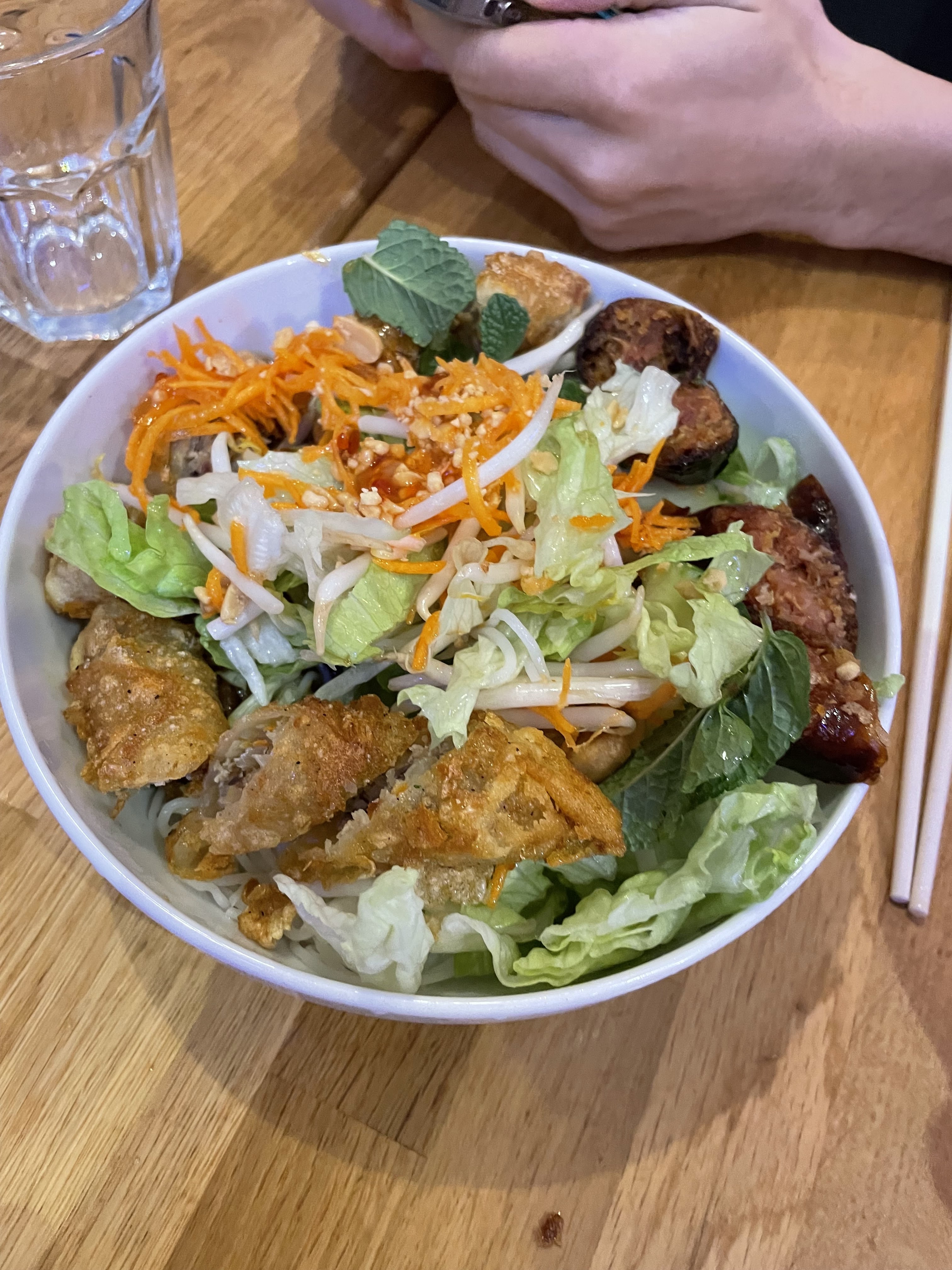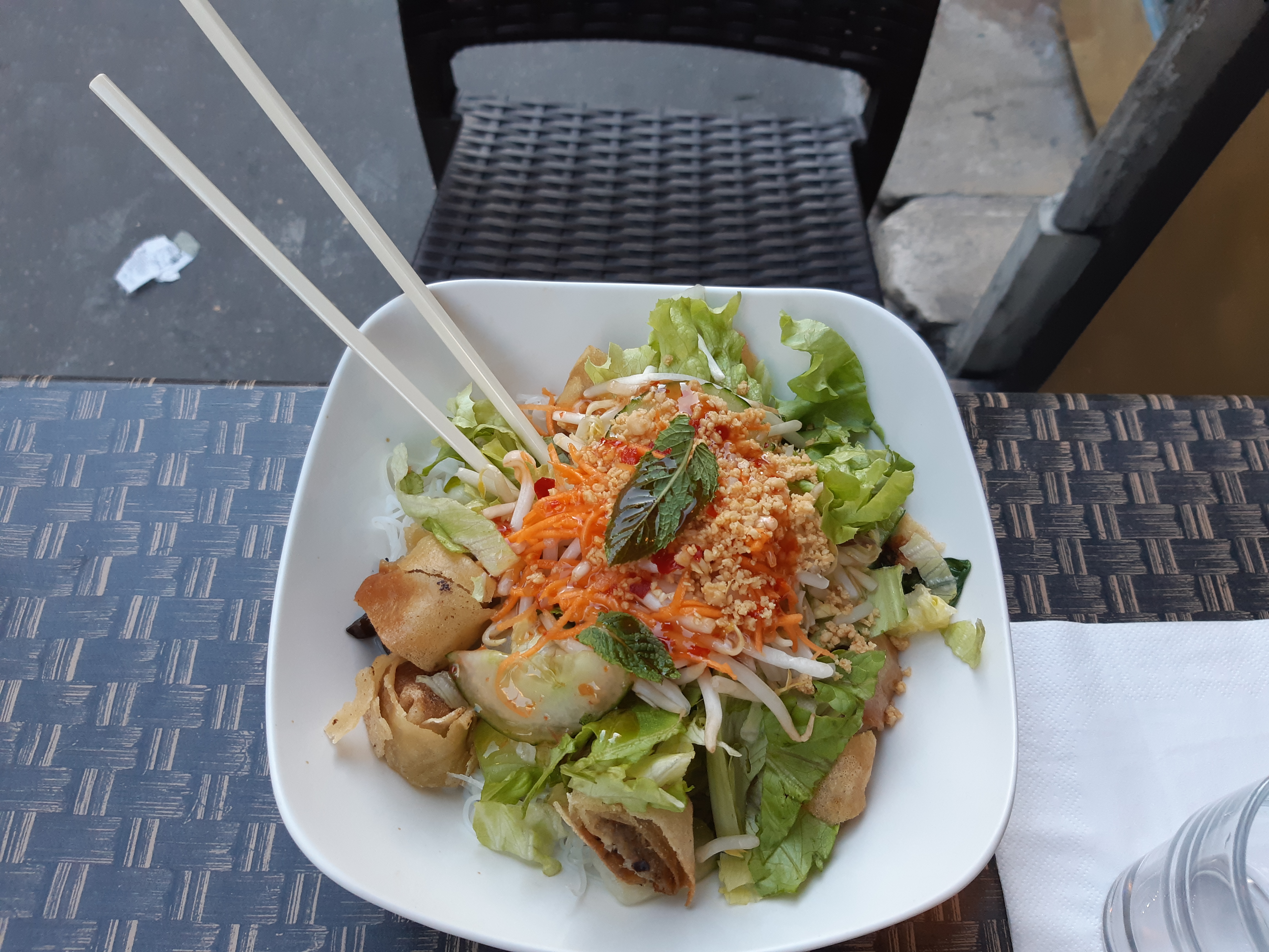 Repas en terrasse, gérants très sympas ! Le bobun était très bon, mais manquait un peu d’autres saveurs pour être parfait !
