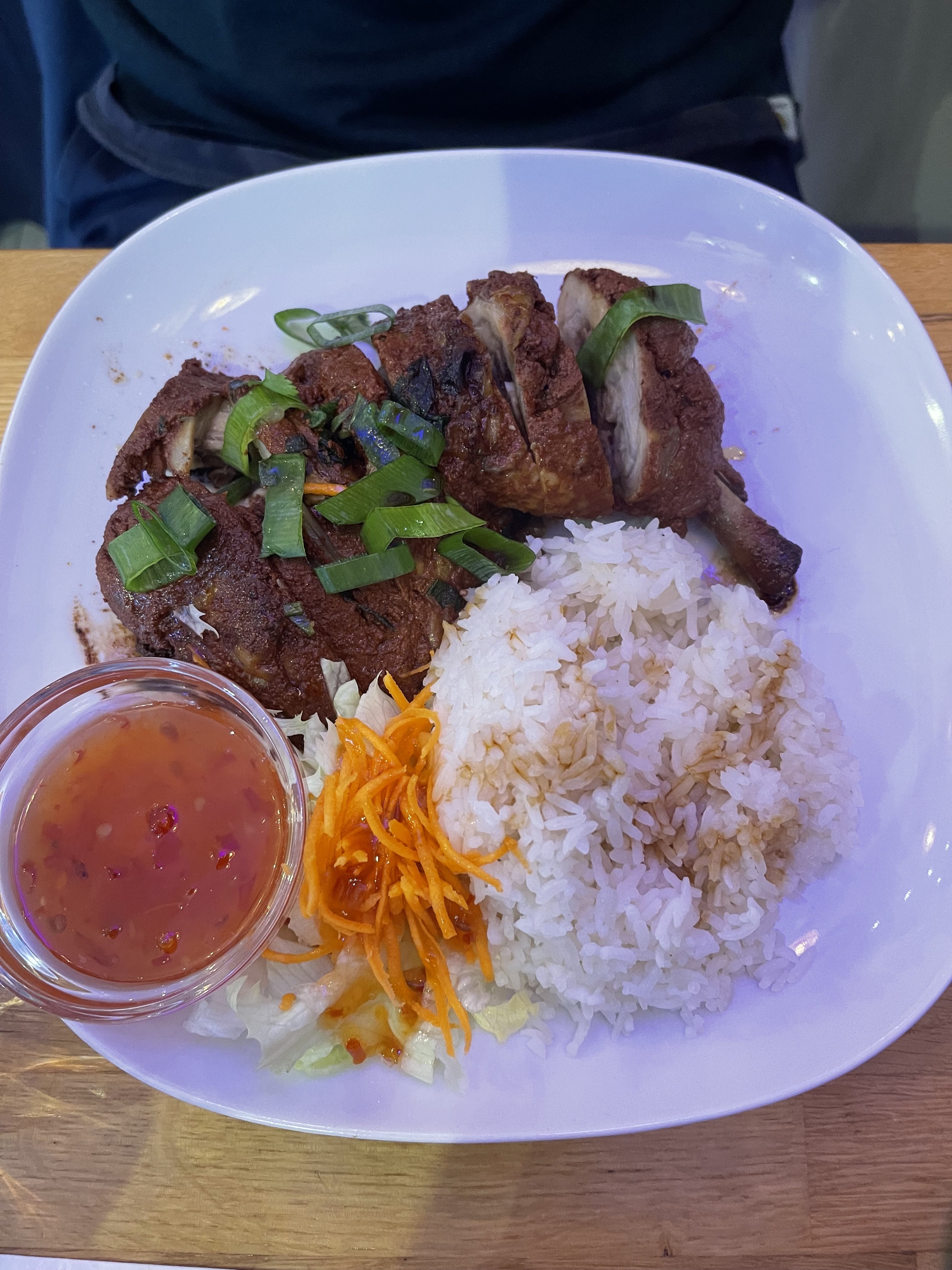 Bon rapport qualité prix Plats cuisinés maison avec beaucoup de saveur, j’ai pris le poisson amock Dommage que tout soit réchauffé au micro-ondes. Le riz en particulier était trop sec