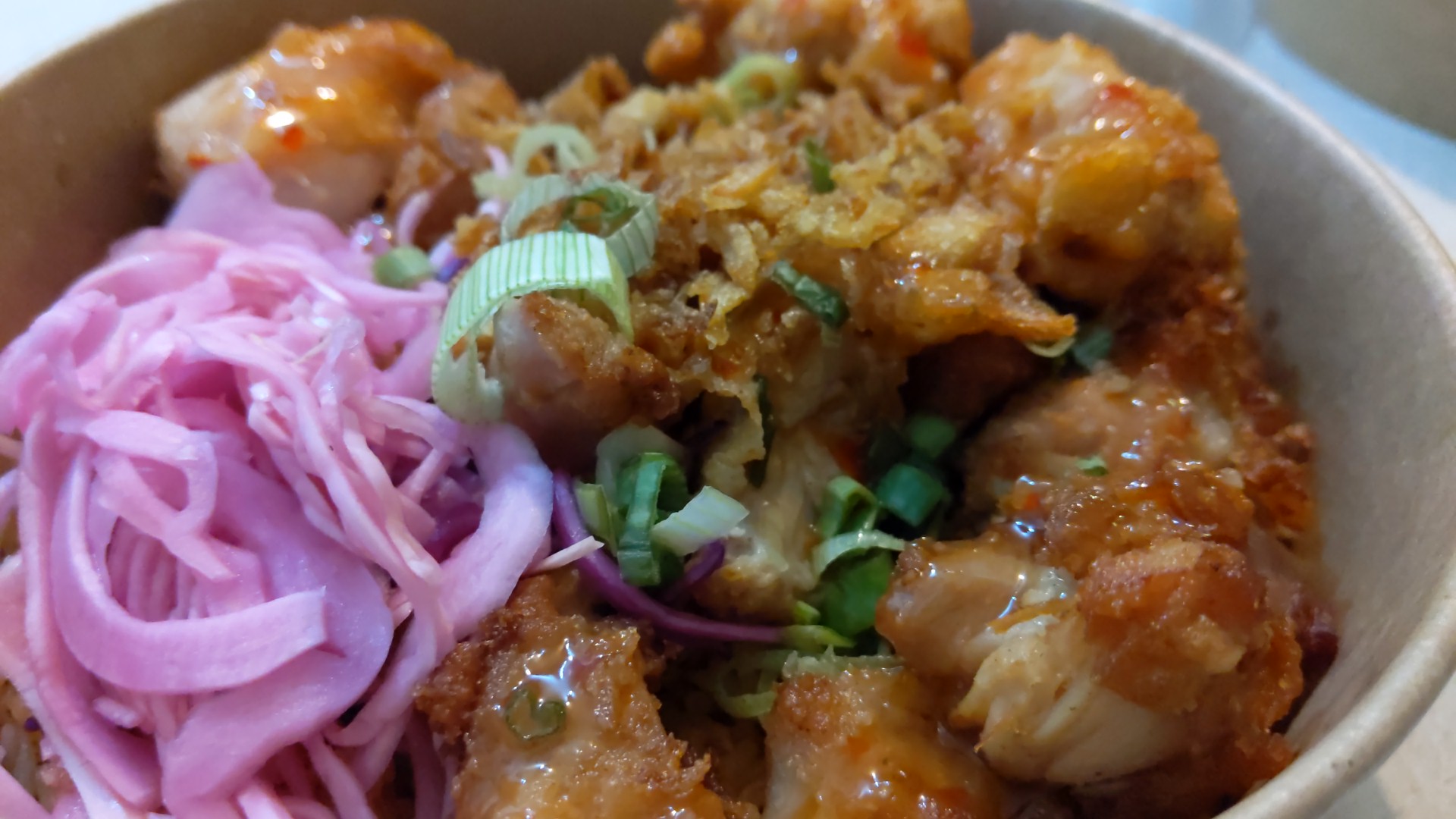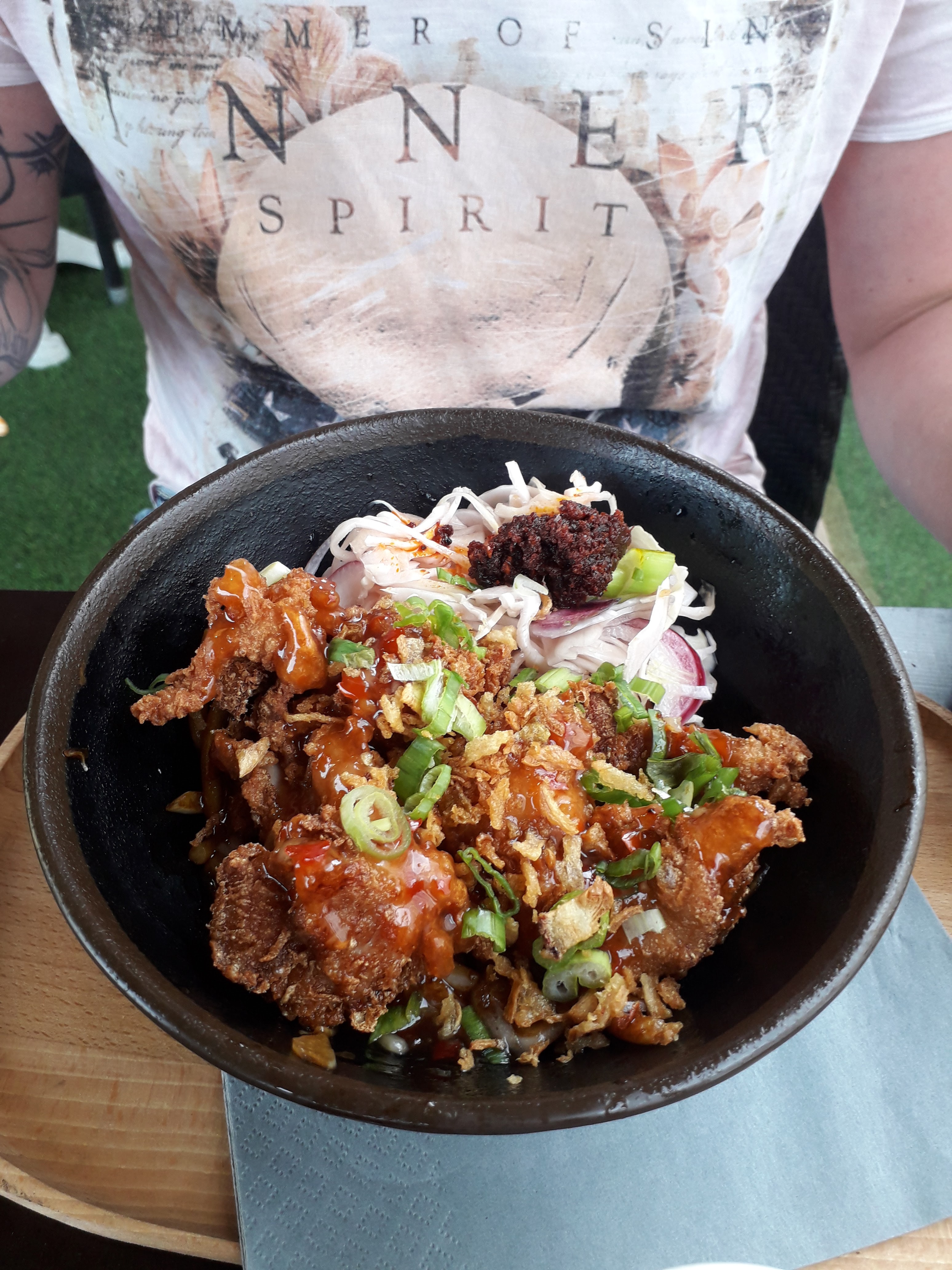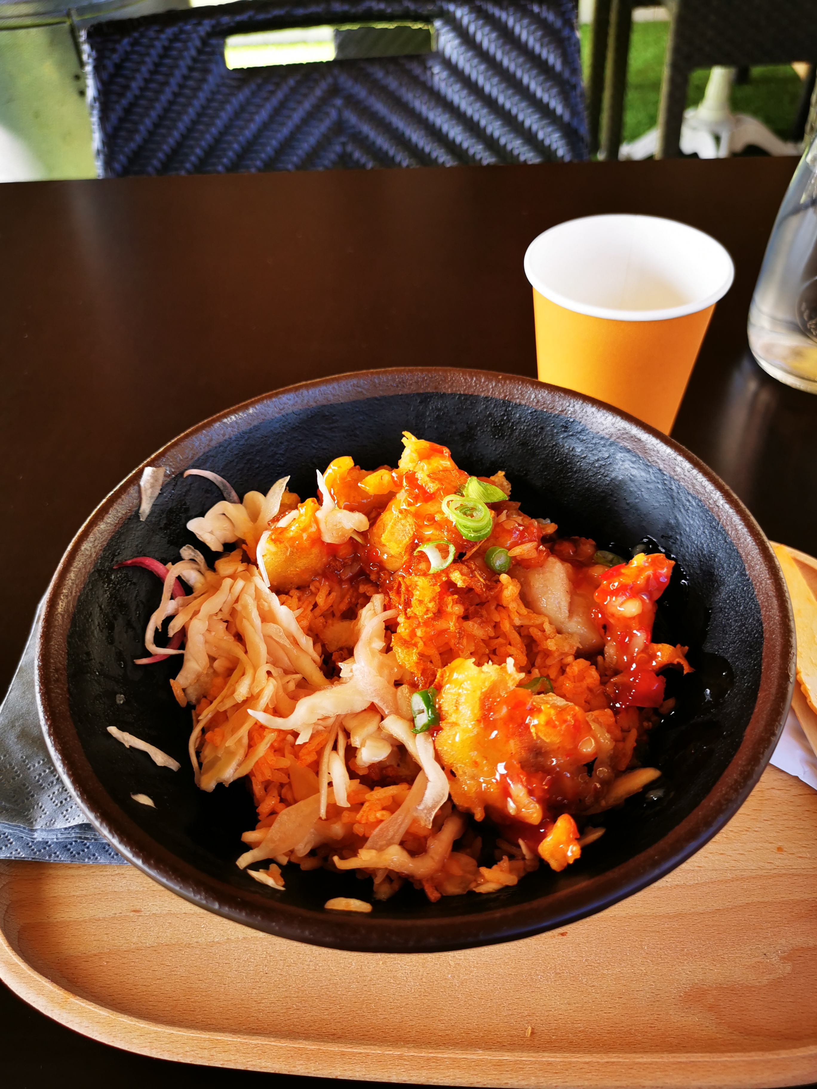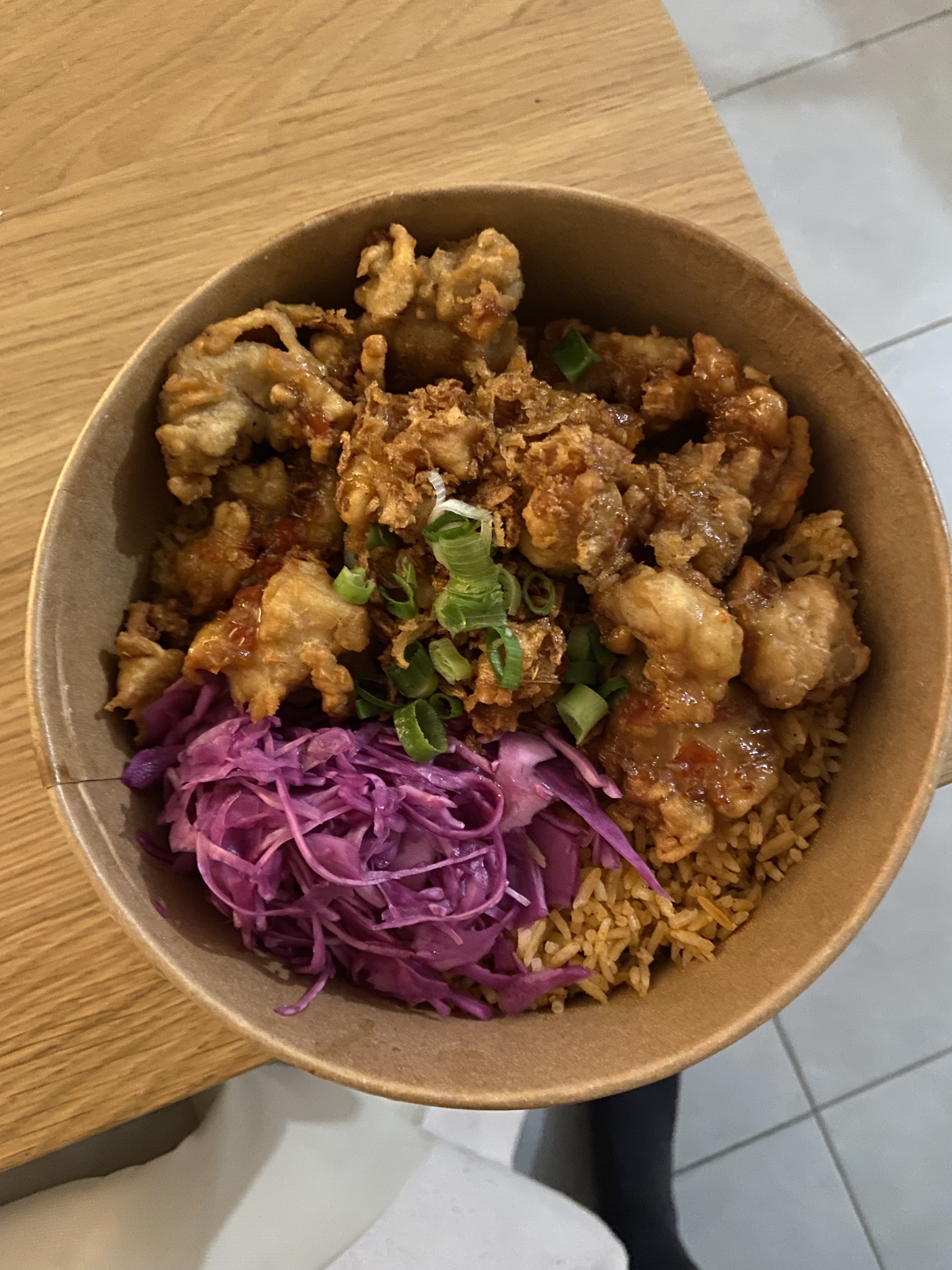 Accueil ok, en revanche les plat c'est de l'industriel, en ce qui nous concerne on a choisi poulet et veggie , le choux est acide, le poulet est trop pané et la panure est ramollie, la sauce est carrément beaucoup trop sucrée, le tofu est insipide. Sincèrement j'ai trouvé ça vraiment dégueu et j'ai quasiment tout jeté...