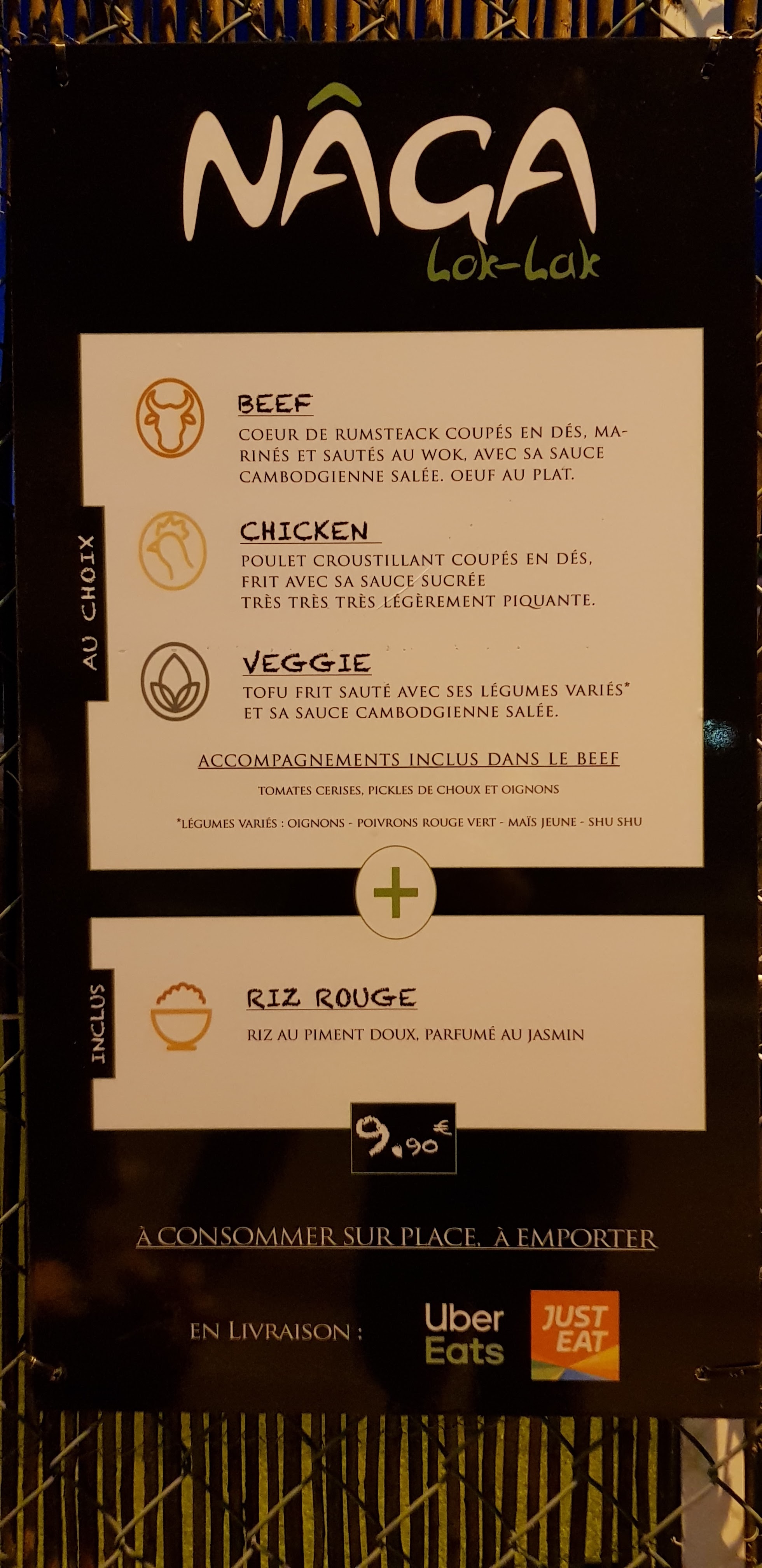 J'ai pris un bœuf lok lak riz. Bon et copieux. Service sympa et efficace. Je reviendrai