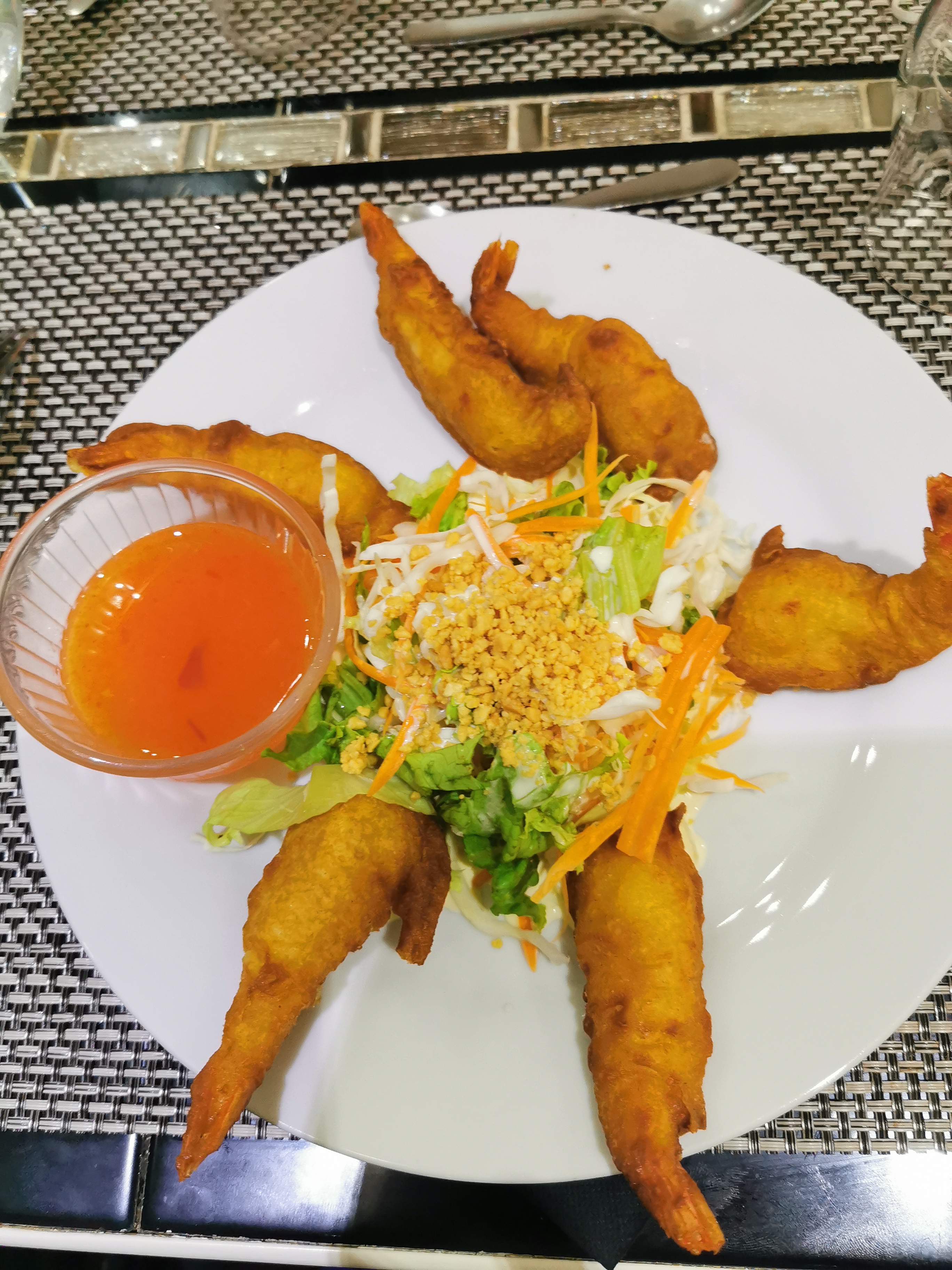 Deux étoiles pourquoi ? Juste pour la propreté de l'établissement et aux assiettes copieuses mais non goûteuses. Sinon de la mayonnaise en guise de sauce sur la salade, ce n'est pas trop Canbodgien 🤔🤔 De la dinde à la place du poulet qui est pourtant dans le descriptif du menue et de l'assiette choisie 🤔 Quatre heures après nos estomacs en gardent encore des séquelles. Franchement très déçu 😓